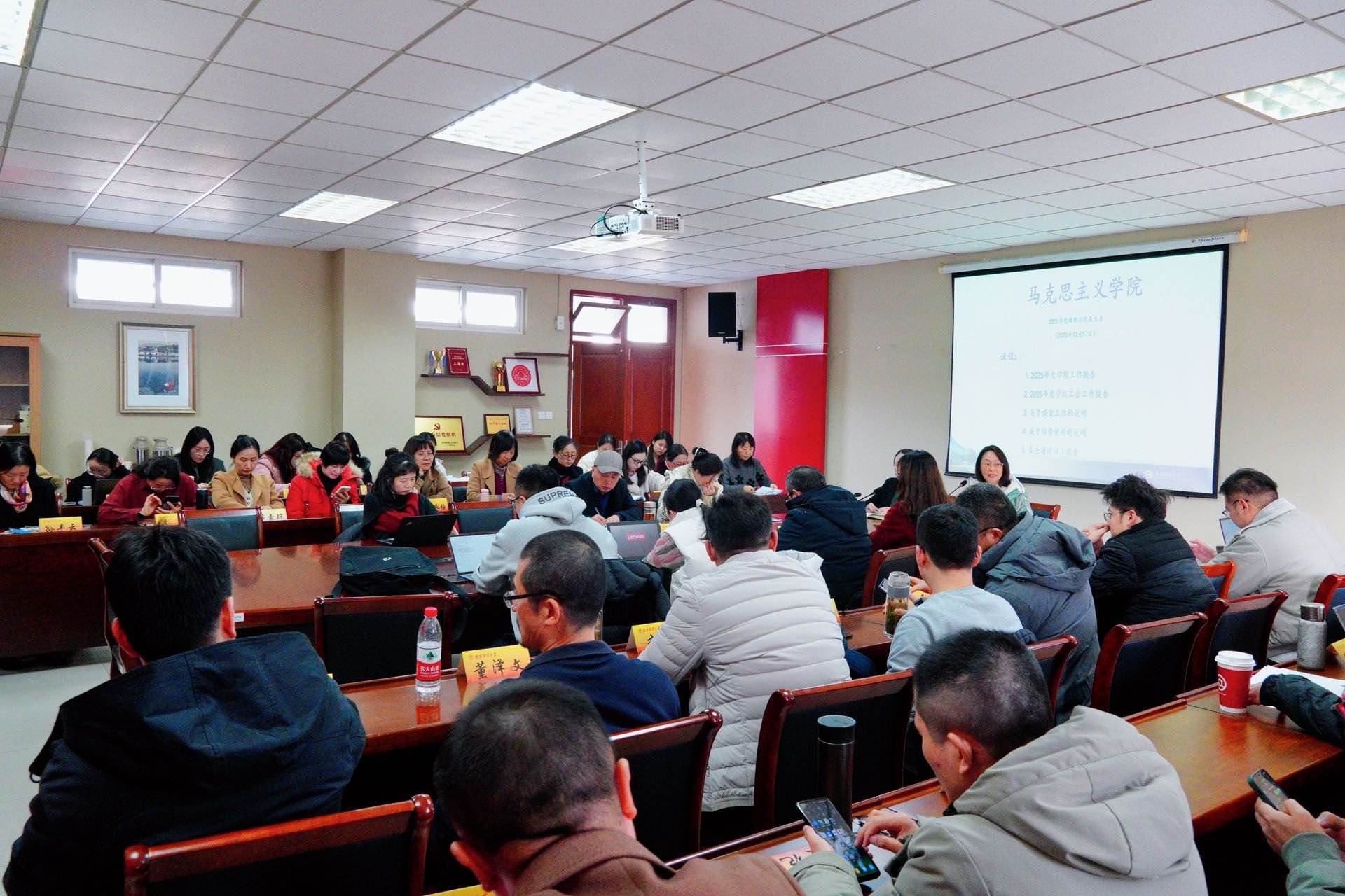 12月17日,马克思主义学院在德正楼508会议室召开全体教职工大会。会议由学院党委书记李骏主持。本次会议共分两个阶段。