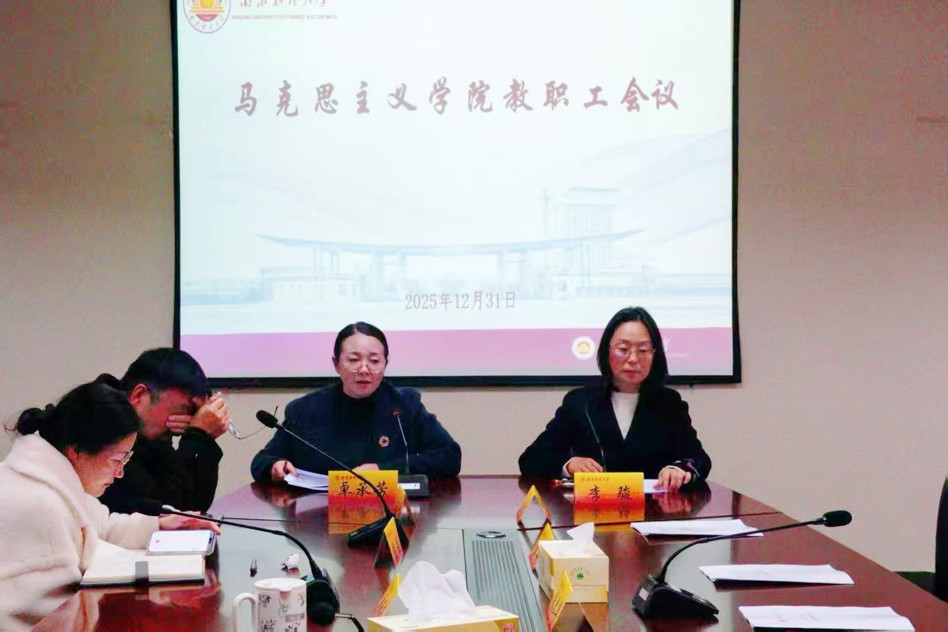 12月31日,马克思主义学院在德正楼508会议室召开全院大会,会议分为全体教职工大会与2025年度现场考核述职测评会议两个阶段进行。会议由学院党委书记李骏主持。