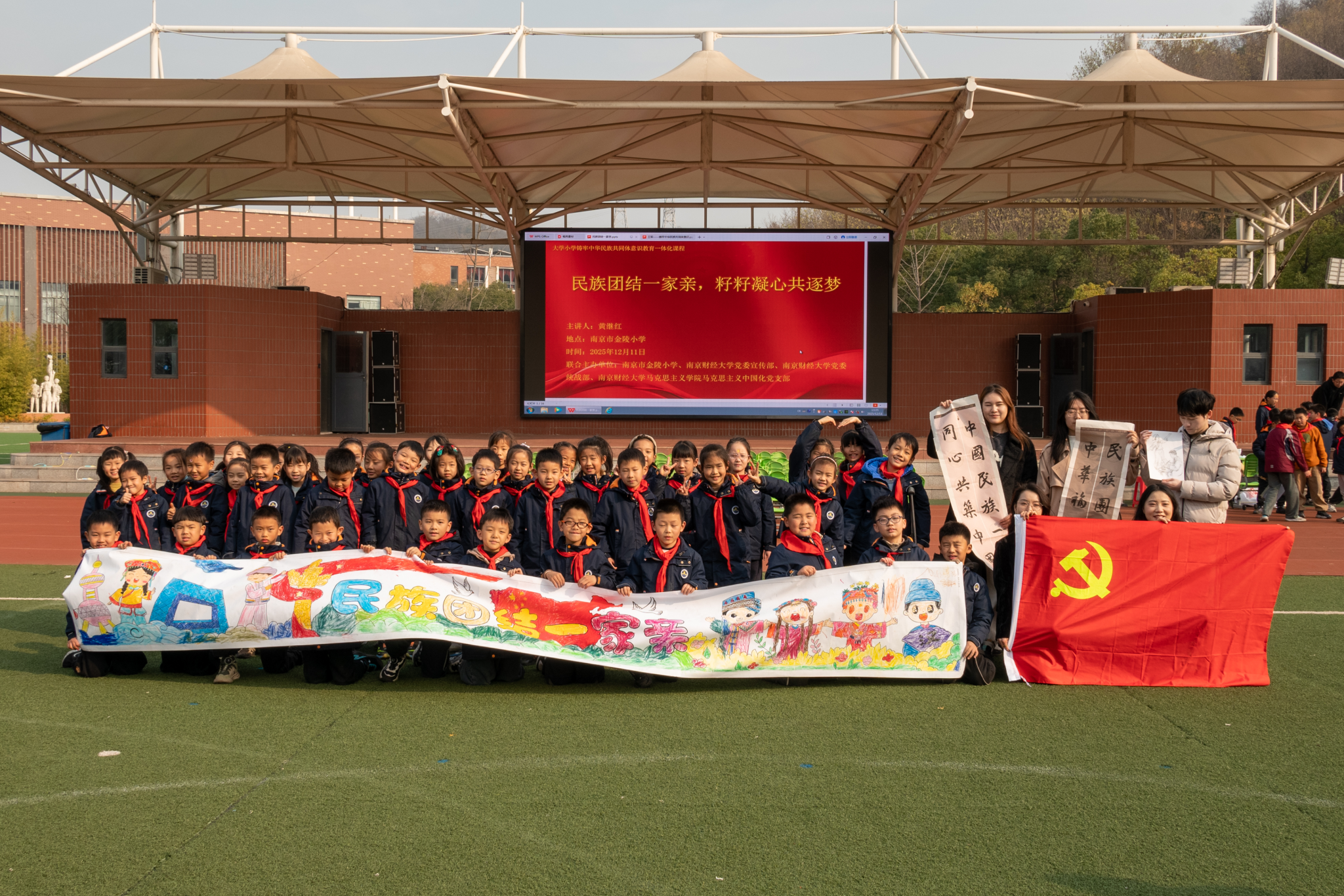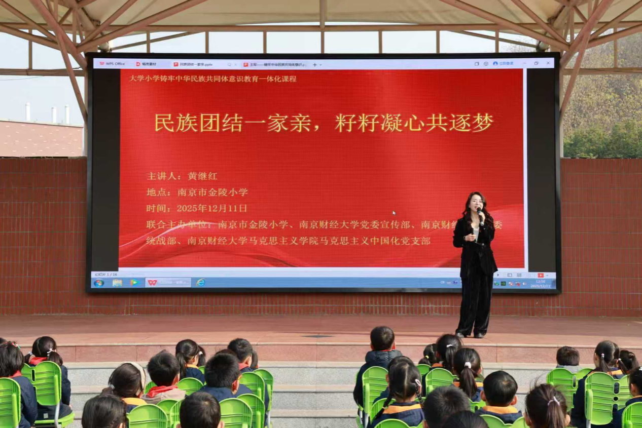 2025年12月11日中午,我院马中化党支部与校党委宣传部、统战部、南京市金陵小学在南京市金陵小学共同开展了以“民族团结一家亲,籽籽凝心共逐梦”为主题的大中小思政一体化主题实践活动。
