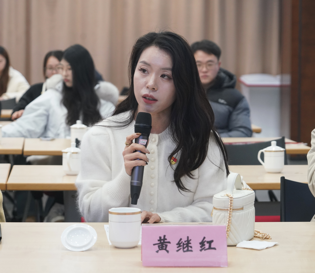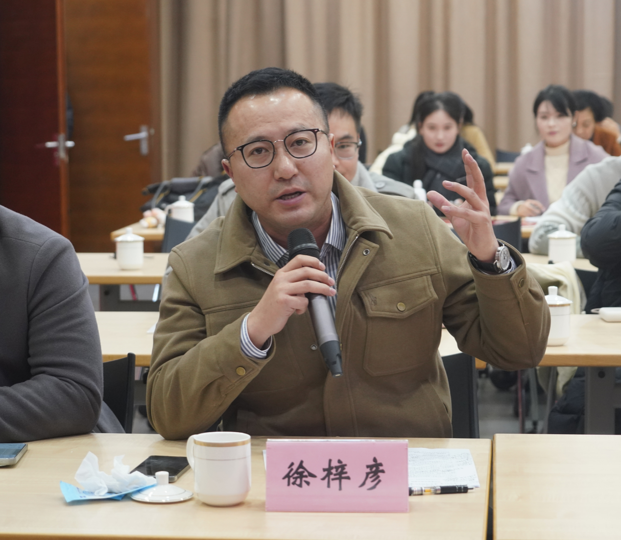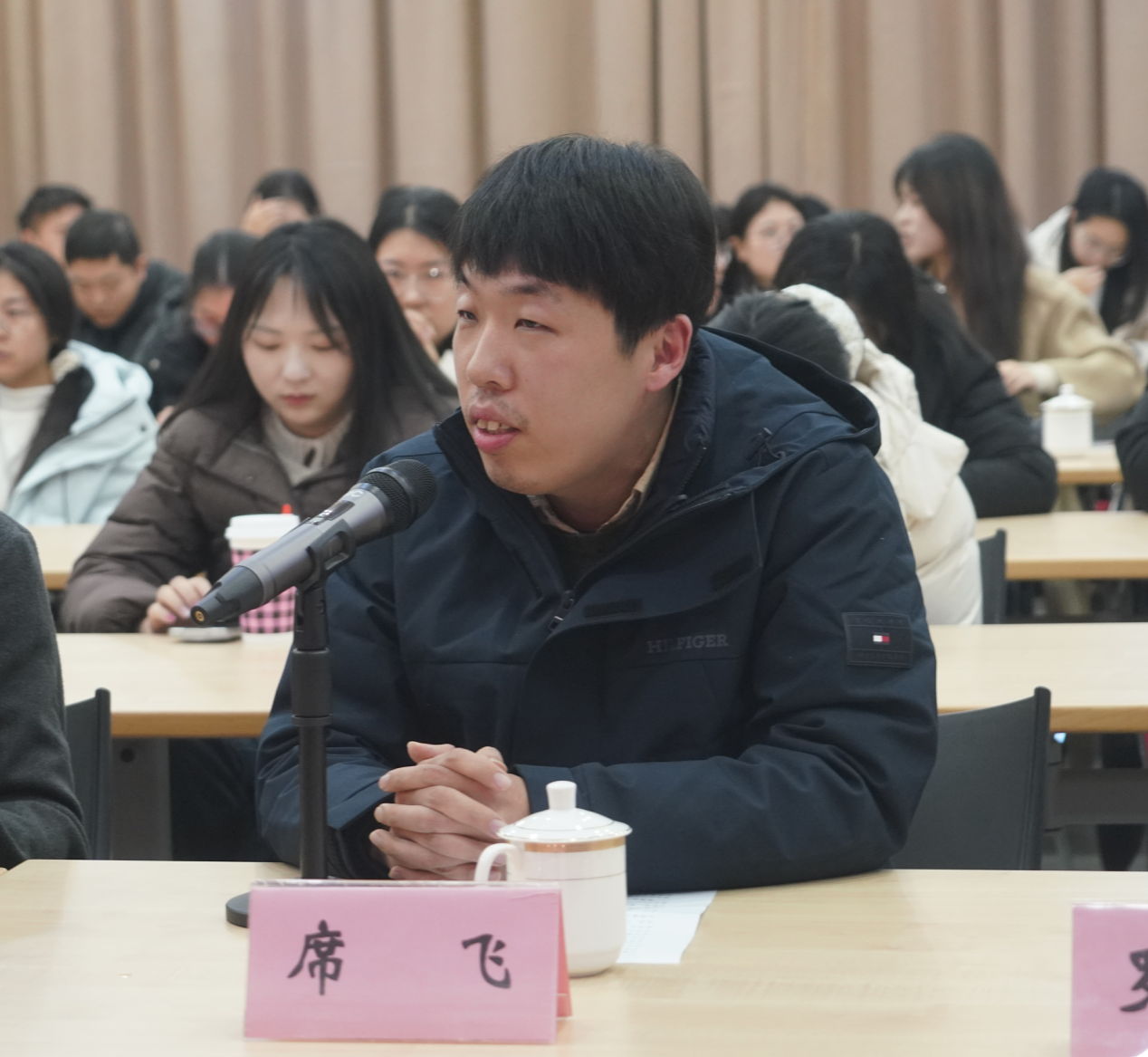 宣讲结束后,马院各教研部党支部书记王萌、徐梓彦、黄继红逐一点评并提出优化建议,南京财经大学党委宣传部副部长(挂)席飞寄语宣讲团,鼓励青年学子以青春之力传播党的声音,以实干担当践行共富使命。