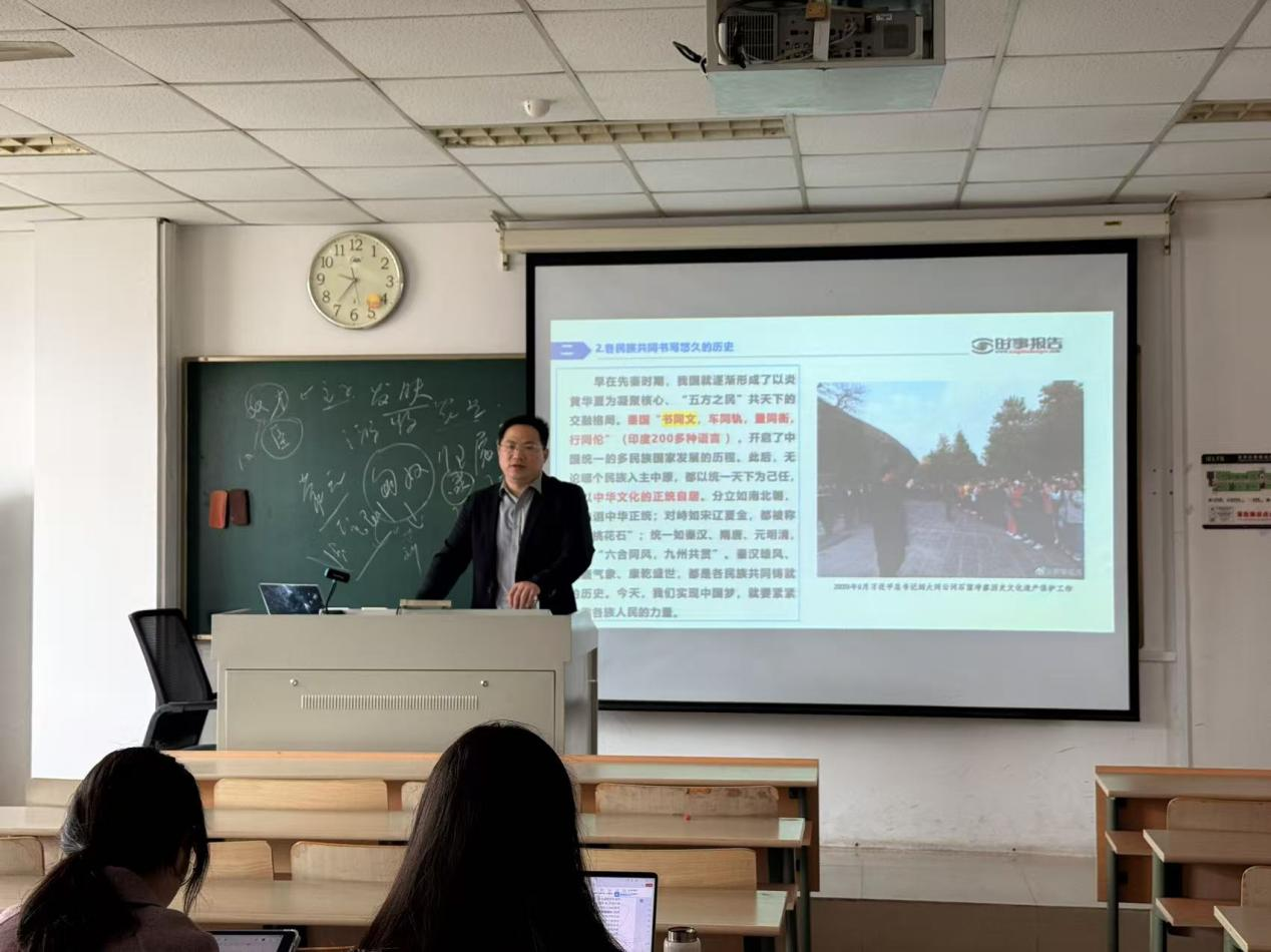 4月14日上午,“名师引航・青马筑基”马克思主义学院分党校系列培训第五讲在博文楼314顺利举行。本次培训特邀党支部书记李飞,以铸牢中华民族共同体意识为主题,为党的发展对象、入党积极分子带来专题党课。